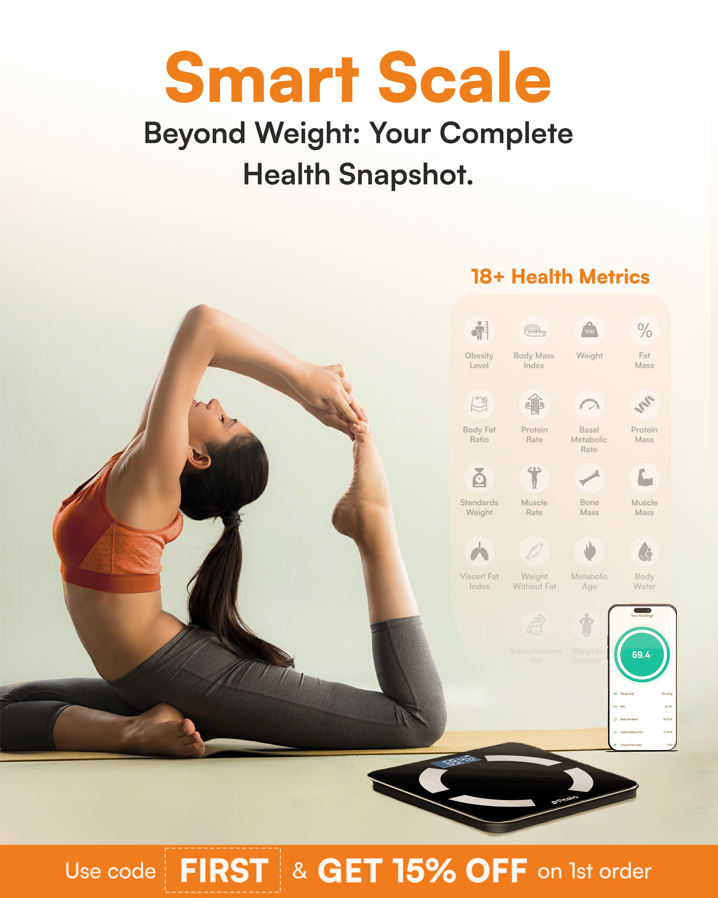 Fitelo Smart Scale | Track 18 Body Metrics | Track your weight loss journey