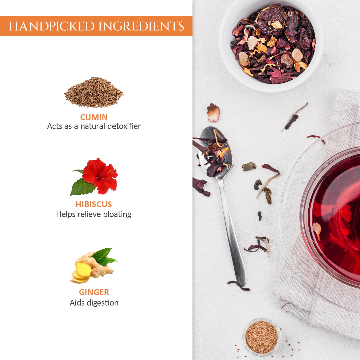 It supports gut health, reduces bloating, and gently boosts metabolism using natural carminative herbs.