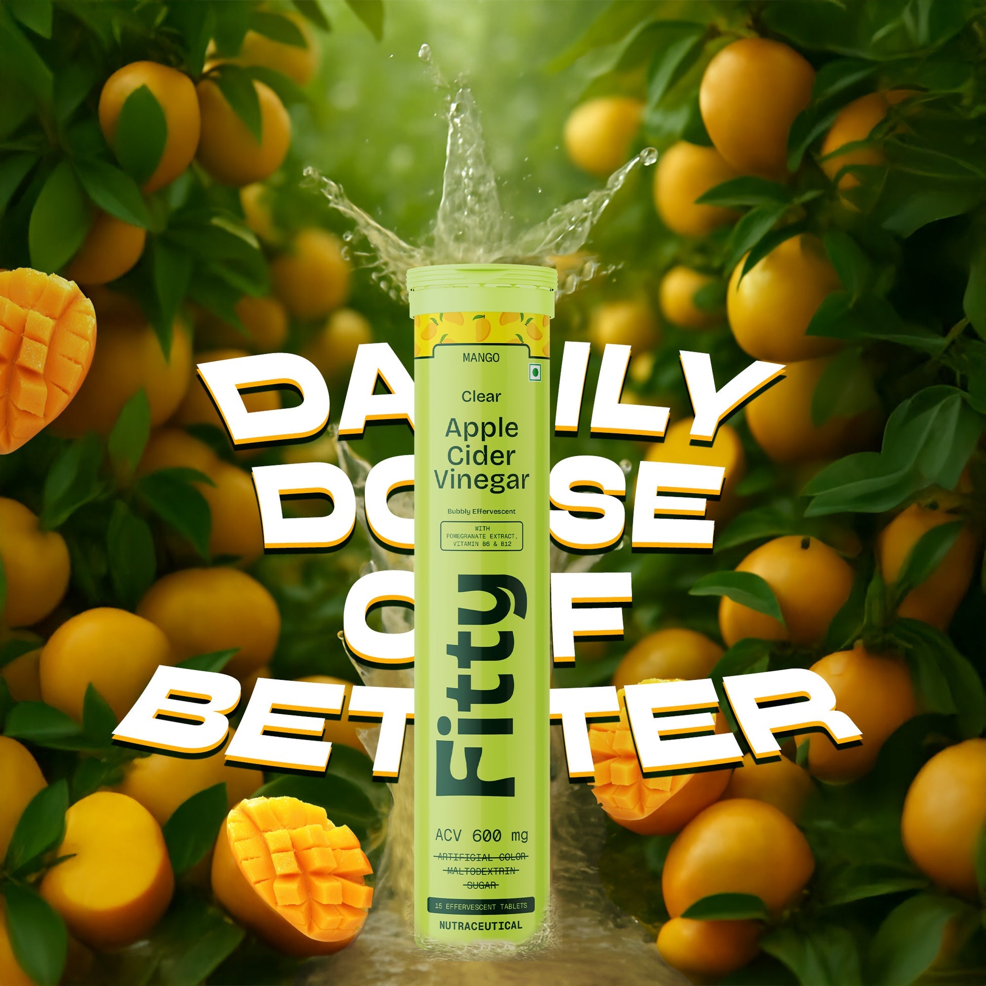 Make your daily wellness routine easier and tastier with Mango-flavoured Apple Cider Vinegar Effervescent tablets. Each tablet delivers 600 mg of apple cider vinegar with the mother in a refreshing, fizzy mango drink β without the strong taste or acidity of liquid ACV.
